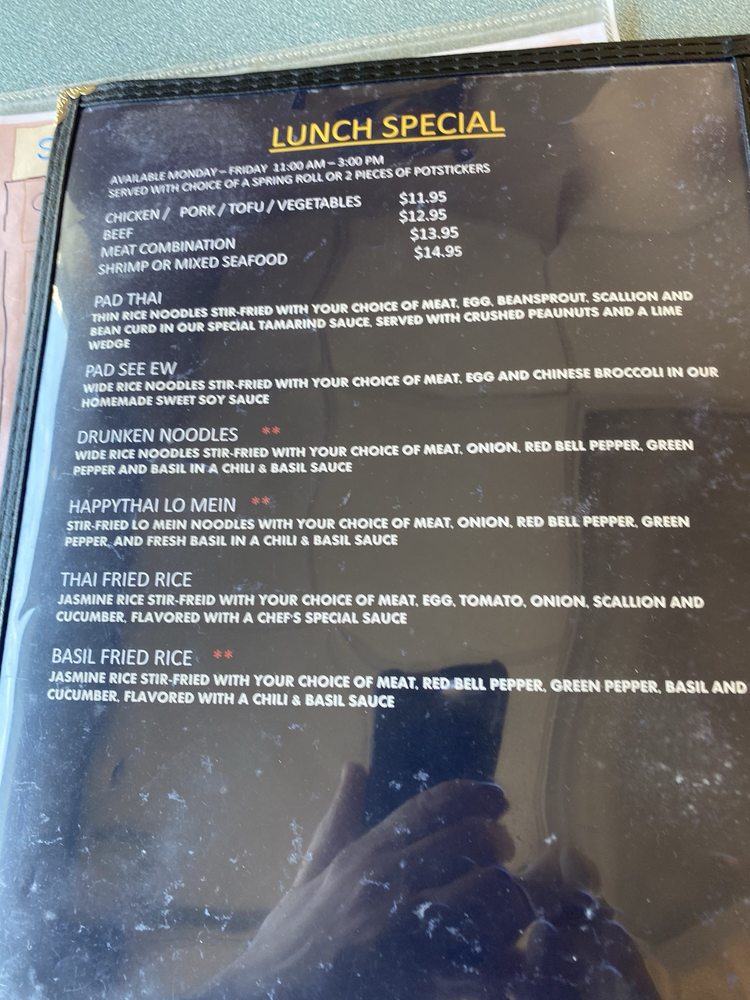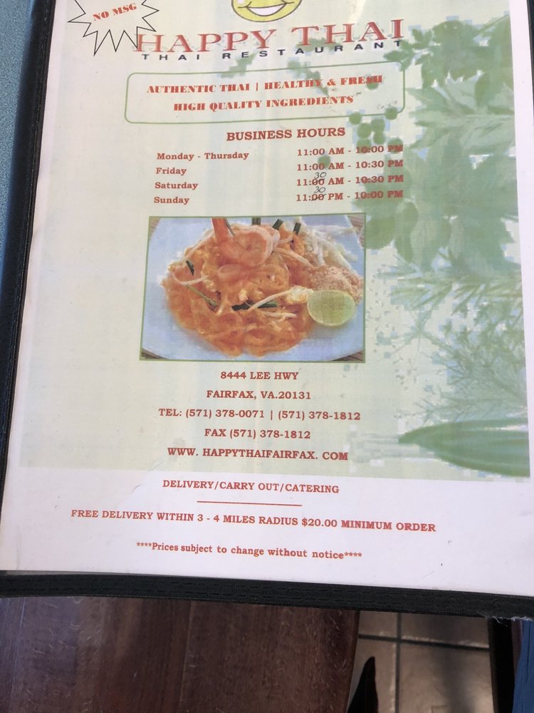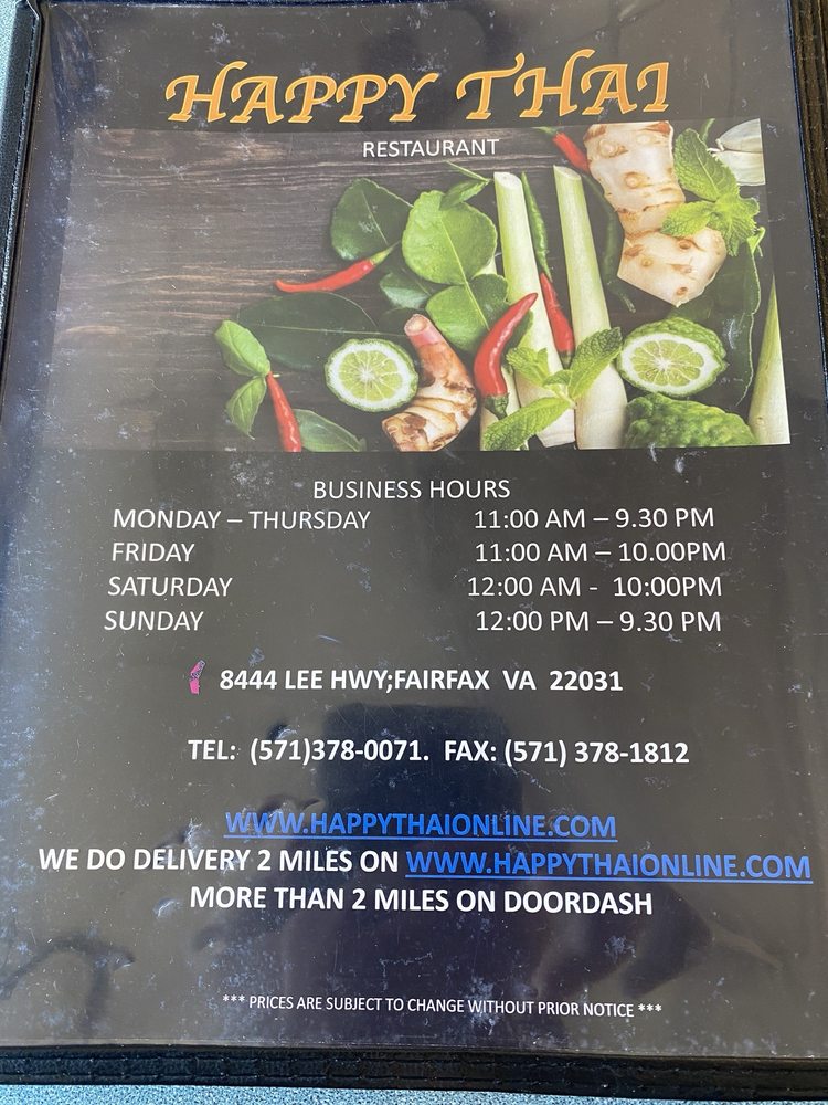 Welcome to Happy Thai, a delightful gem located at 8444 Lee Hwy, Fairfax, VA. Specializing in authentic Thai cuisine, the menu is a vibrant tapestry of flavors that cater to various tastes, including many vegetarian options. The curries are a true highlight, with dishes like the Green Curry featuring tender meat simmered in rich coconut milk, and the Panang Curry providing a milder, peanut-infused experience.